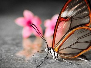 butterfly, stalk, background, Close, fuzzy, grass