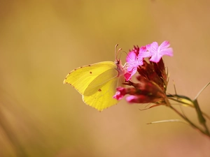 purple, butterfly, Colourfull Flowers
