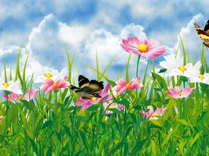 grass, Granate, butterfly