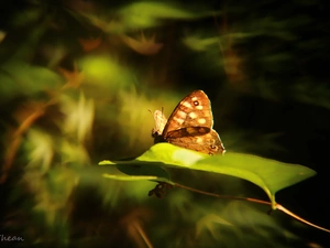 leaves, butterfly, glass