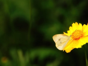 black, butterfly, papavers, White